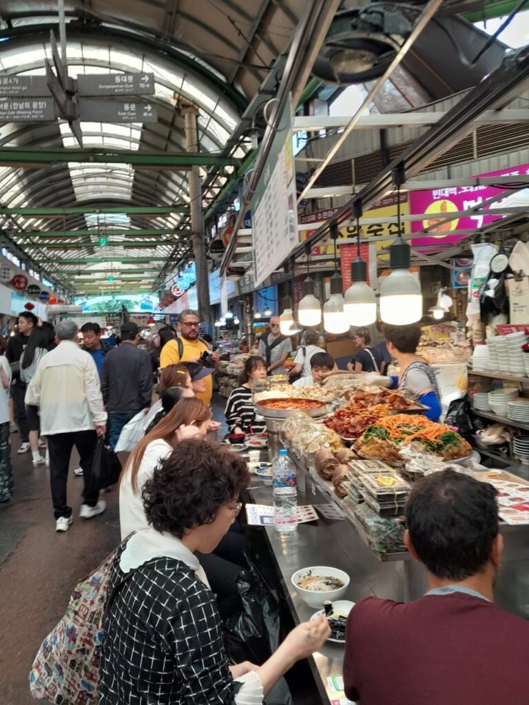 A cena gastronômica é um dos grandes destaques da cidade. Em mercados tradicionais como Gwangjang e Namdaemun, é possível provar a autêntica comida de rua coreana, desde os famosos tteokbokki (bolinhos de arroz apimentados) até o crocante hotteok (panqueca doce). Cafés temáticos, restaurantes modernos e bares escondidos em vielas completam a experiência para quem ama explorar novos sabores.